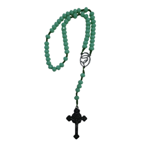 As contas são feitas de cristal, proporcionando resistência ao desgaste e um toque agradável ao manuseio. O terço possui a face de Maria representada de forma delicada, agregando valor simbólico e espiritual ao objeto. O acabamento é escuro, com brilho suave e confortável para uso diário e em momentos de reflexão. Produto leve, ideal para carregar no bolso ou bolsa.