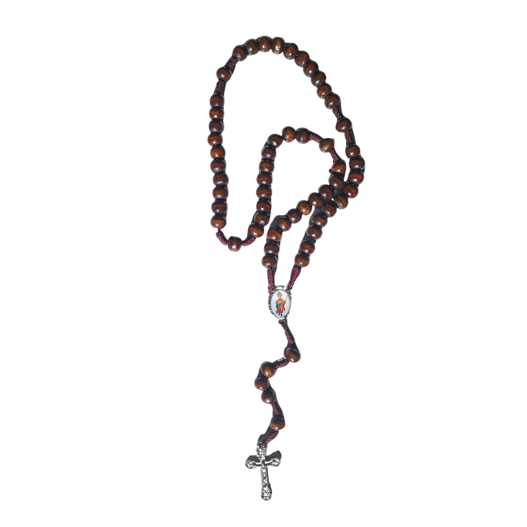 Terço tradicional feito em madeira, perfeito para suas orações e devoções religiosas com foco em São Joaquim.